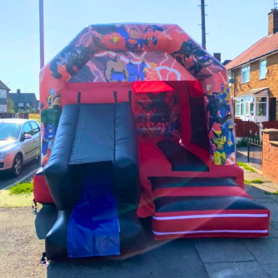 At 12ft by 18ft, the Superhero Bounce & Slide Bouncy Castle is the perfect size for any event and can be enjoyed by children of all ages, whether boys or girls. The superhero-themed design is instantly recognisable, adding excitement and energy to any event as soon as the kids see it. The front-facing slide adds an extra layer of fun, ensuring the bouncy castle is a hit with everyone.