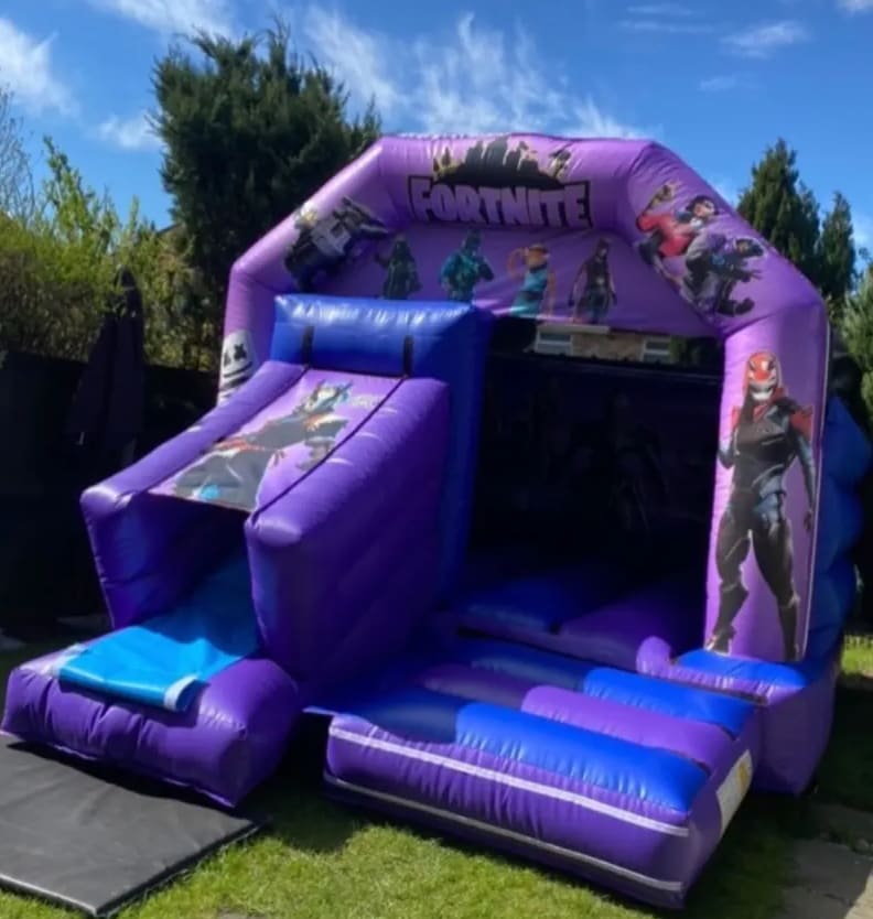 For bouncy castle hire in Liverpool, Widnes, Runcorn, St Helens, the Wirral, and Warrington, contact us today at 07592 166550 or visit our contact page to book the Fortnite Bounce & Slide Bouncy Castle Combo. Let us bring the Fortnite fun to your event and make it a day to remember!