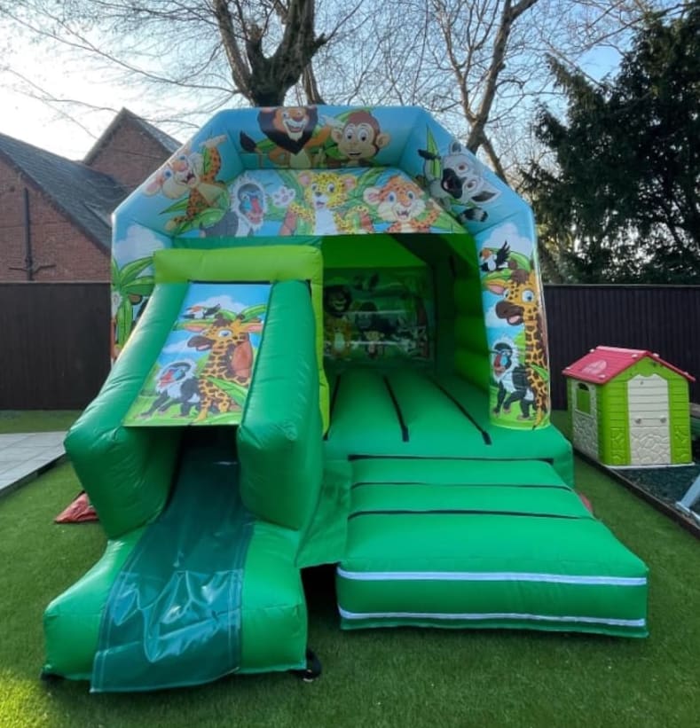 The Jungle Bounce & Slide Bouncy Castle Combo is a vibrant inflatable that brings the thrill of jungle exploration to any event across Liverpool, Widnes, Runcorn, St Helens, and the Wirral. This exciting bouncy castle combines a spacious jumping area with a fun slide, providing endless entertainment for children of all ages. With its eye-catching jungle-themed design, featuring friendly animals and lush greenery, this inflatable wonderland is perfect for kids who love adventure and imaginative play.