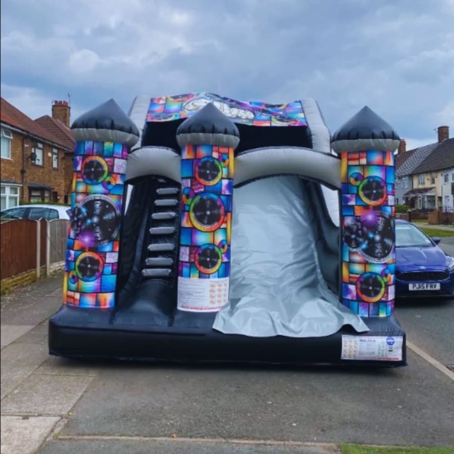 The Disco Mega Slide is a show-stopping inflatable available for hire across Liverpool, Widnes, Runcorn, St Helens, the Wirral, and Warrington. This black and silver bouncy castle is designed to turn heads and elevate the fun at any event. Standing tall at 20ft by 15ft, the Disco Mega Slide provides hours of excitement for children of all ages, offering a thrilling slide experience combined with the vibrant energy of a disco. Perfect for birthday parties, school events, and family gatherings, this inflatable ensures that your guests are entertained from start to finish.